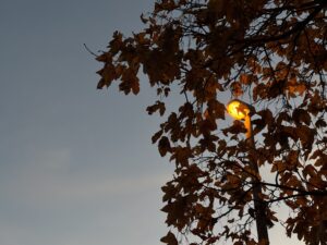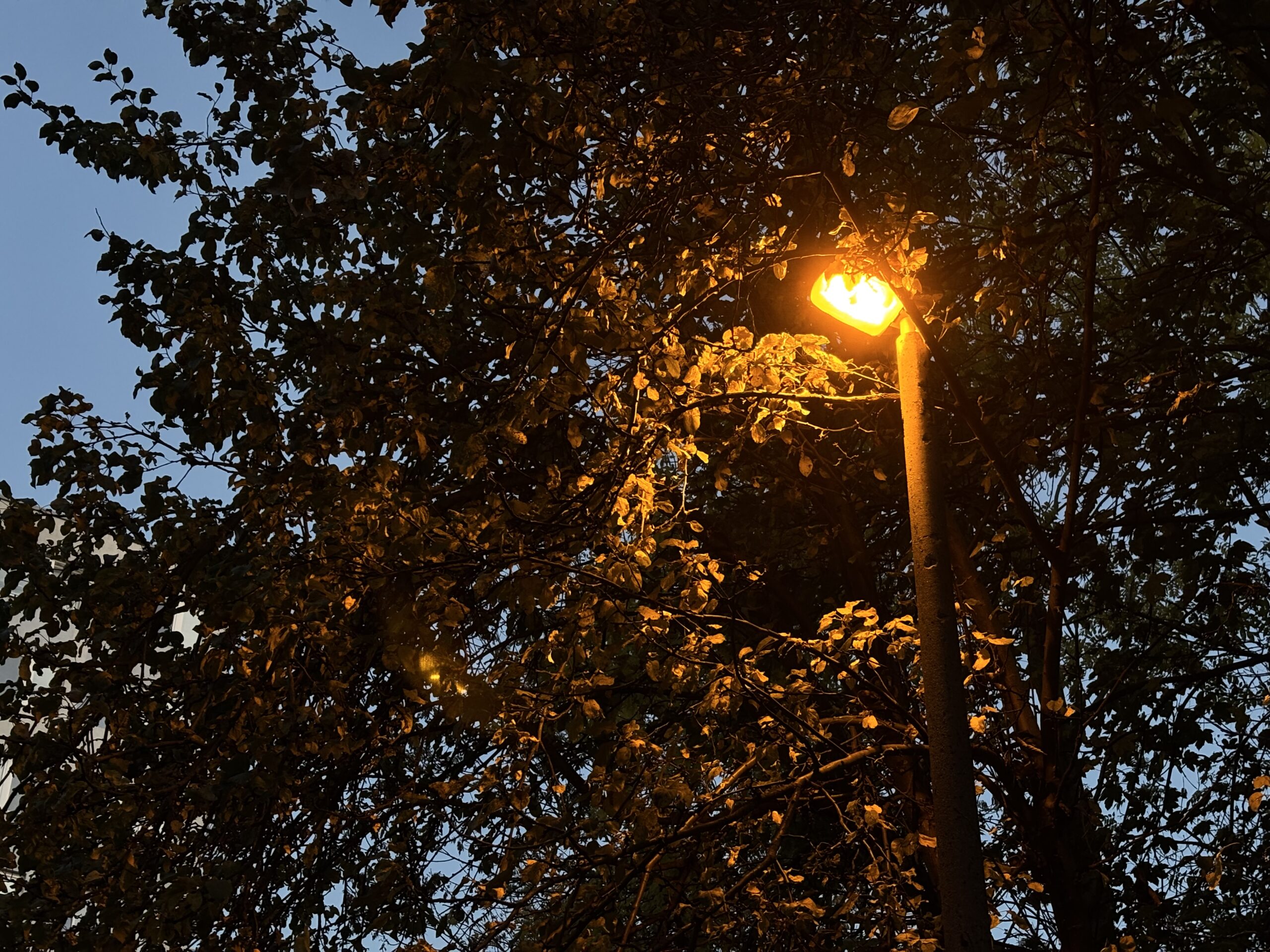 żółte lampy przypominają powrót ze szkoły jesiennym popołudniem, stały spokój się w nich krył