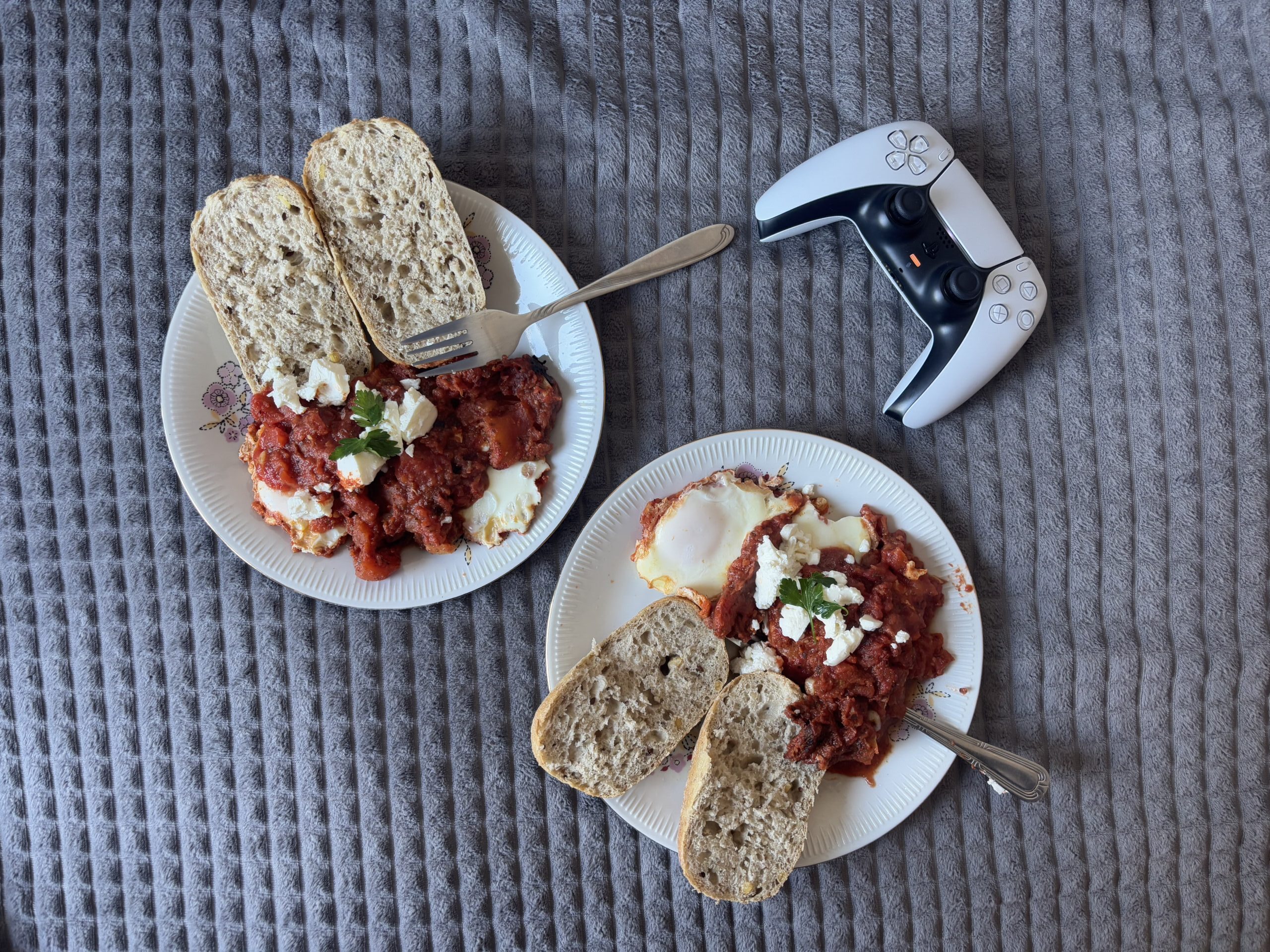 Podążam śladami zlepionych mąką wspomnień, widząc długie spacery po mieście i niezapowiedziane wizyty obfite w słono-słodkie ciastka z czekoladą. Drożdżówkowa kruszonka maluje obraz polskiego czerwca, kruchy jabłecznik gra w karty z jesienią. Znam takich, co wypiek z jabłkiem traktują z największą powagą i uwielbieniem – wśród tylu innych wypieków, wybrać ten klasyczny za ulubiony? To piękna prostota. Krokami przydeptuję dalsze ogryzki, wafelki od lodów jedzonych nad morzem, grzanki pałaszowane pod kocem przy Milionerach (kto nie myśli, że na wszystko zna dobrą odpowiedź?). W zębach kotłują się zagubione ziarenka maku z podarowanej kiedyś babki, do palców przywarł puszysty serek z hojnie posmarowanej nim połówki bułki poznańskiej. Jej obłoczność bawi podniebienie, z sierpniowym pomidorem tworzy duet idealny. Na talerzu obok kryształki soli i ziarenka pieprzu, smak dzieciństwa, domu i bezpieczeństwa.