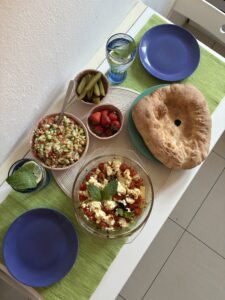 W ciągu dopiero wyrastającego jak na drożdżach życia, przewinęło się przez mój brzuch wiele posiłków. Te najprzyjemniejsze spędzane były z innymi ludźmi. Ciasto jogurtowe jedzone samemu smakuje dobrze, jeszcze lepiej przy stole nakrytym radością z przyjaciółmi czy rodziną. Taca orzechowca jest nie do przejedzenia w samotne popołudnia z kawą, w święta, gdy siedzi się razem, znika w tle rozmów. W kawiarni za ladą leży ileś dzisiejszych dobrodziejstw z chrupiącą skórką i gładkim miękiszem. Rządek gapiów zastanawia się nad puchatym rogalem lub warkoczem chałki. Włosa nie dziel na czworo, dziel się ciastkami. Polecaj nowe piekarnie, wspieraj lokalne wytwórnie, leć po świeże bułki, jak mój tata, gdy byłam mała. Pisz pracę o chlebie na pierwszym roku studiów i rozmawiaj z ludźmi na temat ich rodzinnej historii i wytwórniczej pasji. Jak Jaś i Małgosia wyznaczaj niezapomniane ścieżki rozsypanymi okruchami, choć lepiej stroń od gołębi. Przez jedzenie poznawaj świat, podróżuj, kąsaj wspólnie, bez kąśliwych uwag traw. Na trawie leż spokojnie – co za piękne czasy, w takim luksusie żyć.
