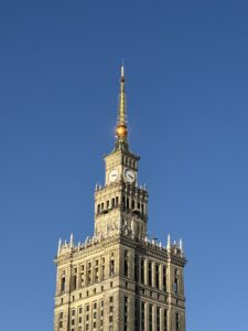 Witając weekend w czwartkowe popołudnie, żegnaliśmy błyszczący czubek Pałacu Kultury. Wymuskany jakby każdy przechodzień głaskał go spojrzeniem, zniknął wraz z wejściem do tłocznego dworca PKP. Pociąg wjechał na peron prędko, równie szybko przemierzał polskie tory – jakby luksusowy, szybki, z wodą rozdawaną gratis. Gazowana czy niegazowana? Wybór przekąsek jest, WARS z pierogami ruskimi i wartym tysiące ekspresem JURY szczyci się swoim standardem “klasy premium”. Okraszone cebulką jemy na spółkę, studencki budżet z trudem uniósłby cenę biletu i posiłek w całości. Dobrze jechać razem, oglądać stare Kroniki Filmowe i podziwiać obrazy wprost z socjalizmu. Czas leci, tylko 4 godziny 18 minut. Zaraz Poznań, Stargard i dom. W Szczecinie słońce dawno już zaszło, a dusza jakoś rozpromieniona.