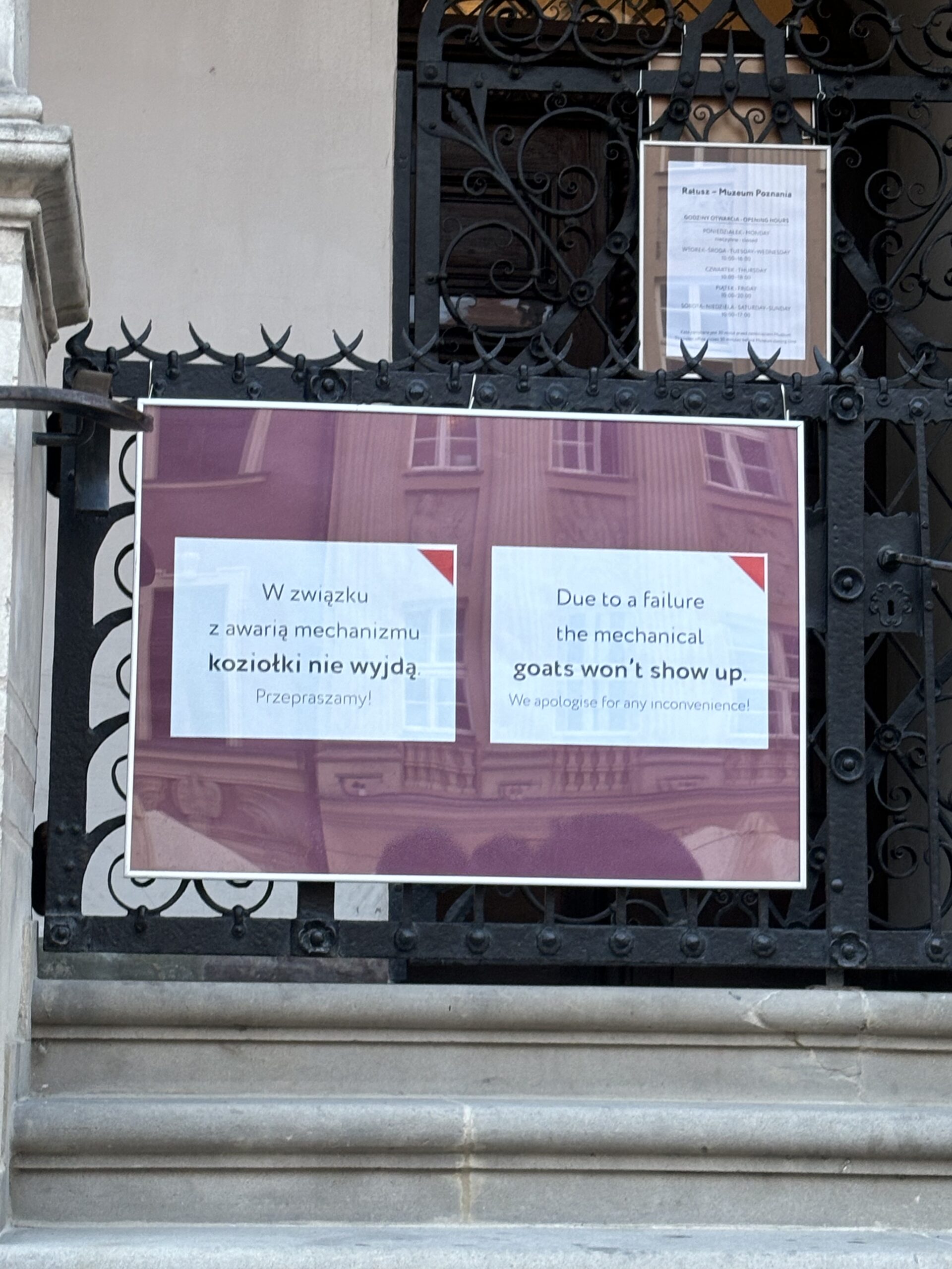 Warta poznania nieszerokim potokiem płynie przez miasto, nieoszałamiająco przykrywa swoje brzegi zaroślami, bujnymi trawami, roślinnością – zgoła inaczej niż przy zabetonowanych bulwarach. Ma to swój urok, bez wątpienia. W podobnej atmosferze zieleni góruje park Cytadela, ogromny, uroczy, z różanką, pełen biegaczy w radioaktywnych koszulkach i psiarzy z merdającymi ogonkami psinami. Siedzimy na ławce i znów patrzymy na okolicę,  na przemian podbierając wegańskie, tęczowe żelki. Tematycznie, w mieście był wszak marsz równości. Nie dzielimy się po równo, kto pierwszy ten lepszy, towar słodki, więc pożądany. Słodkich snów nie ma co życzyć – nie spać, zwiedzać. Kolejne kroki przed nami, dalekie dzielnice, zwykłe targi, żółto-zielone tramwaje, chociaż wcale nie pasują do tego miasta. Poznań powinien poznać się lepiej – jego kolorem jest niebieski, oplatający wszystkie literki i gwiazdkę w logo. Choć z ciałami niebieskimi nie ma wiele wspólnego, zostawmy to Toruniowi, jest znany z koziołków. Out of order, goats won’t show up, szkoda. Zza framug okien na przeciwko ich okienka wychodzą absurdalne postaci: Trump, Ronaldo, Biden i inni. Znów ciągła zmiana, miejskie dopasowanie do realiów, koziołkom jest pewnie nieco szkoda, ale co zrobić, gdy nie wyjdą? Używać ironii, żartować z rzeczywistości, podtrzymywać tradycję w formie absurdu. Przewrotność jest piękna.