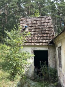 sień i nieistniejące już beczki, wejście do domku, czyli świadectwo upływającego czasu