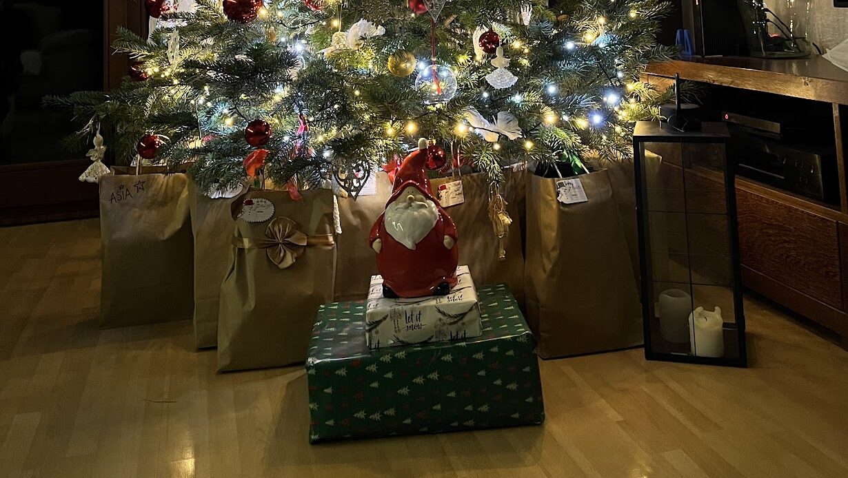 Przychodzi też ten moment – prezenty wielgaśnie spakowane w kartoniki, każdy z osobna starannie zawinięty. Podnoszą opadające gałązki rozjaśnionej choinki, wszystkie obok siebie, wśród czyhających z każdego domowego kąta krasnali. Chylące czoła przed swoimi właścicielami, czekają tylko na otwarcie i wielkie święto rozrywanego papieru w kolorowe drzewka czy gwiazdki. Choć to też ekologiczna masakra zasobów, trudno zrezygnować choć raz w roku z tego rytuału rozpusty, przepychu, ochów, achów, zaskoczeń, ciepła. To mama właśnie najbardziej radośnie spogląda na odkrywane kolejne warstwy i pudełeczka prezentów – obserwuje reakcje i spełnienie zalewa jej twarz rumieńcem, gdy dostrzeże radość obdarowywanego. Bardzo mnie to urzeka, ale zanim to wszystko? By podarek mógł dopełnić zadania, trzeba na niego zasłużyć – wierszyk, piosenka, ciekawostka, taniec, pompka? Co wymyślisz w tym roku? Słowa za prezent?