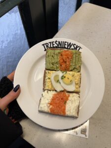 Co jeszcze tkwi w przyjazdowym życiu po wiedeńsku? Kolorowe talerze ze światowym jedzeniem, przypadkowo napotkany polski sklep, przechadzki po rozsławionych vintage shopach i małe kanapeczki zjedzone w barze Trześniewski (historię tego miejsca polecam doczytać!). Zapalone na zielono sygnalizatory światła z ludzikami złączonymi przez serce; spójna architektura, komnaty cesarzowej i jej absurdalnie śliczne suknie, drążki zawieszone w jednym z pokojów. Diamentowe gwiazdki-spinki na jednym z portretów i smutek wydzierający się z zasłyszanej w muzeum historii o jej życiu. A przy tym złote wazony, dobra kawa, dużo wydatków i drogie sercu doświadczenia.